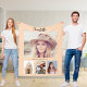 Una gran plantilla de fotos y tres fotos más pequeñas, fotos de amigos, mascotas, hermanos. Un fondo de color melocotón de moda, texto gris oscuro. Personaliza y agrega tus propias fotos, un nombre y un texto.