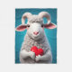 Divertido Ewe sosteniendo un corazón rojo.
