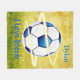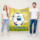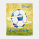 El bohek amarillo se enciende con la hierba verde y un balón de fútbol azul y blanco.
