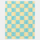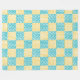 El color turquesa, amarillo y blanco adoran los corazones en un tablero de ajedrez moderno y de moda. Este diseño a cuadros sería perfecto para una habitación adolescente con albornoces retro.