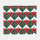 El patrón de diamante de los dulces y la palabra amor en cursiva se hace en colores rojo, verde y blanco.