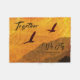 Añada su nombre a este diseño elegante. Dos pájaros vuelan en un cielo rojo de oro con el sentimiento romántico "juntos que volamos!"