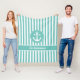 Manta Polar Anclaje nautico con franjas Verde azuladas y blanc