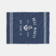 Manténgase cómodo en su bote con esta fresca manta de lana de personalizado. El diseño náutico en azul marino y blanco clásico incluye el nombre del barco, el registro del barco y el año de las letras blancas rústicas con una cuerda y un ilustracion de ancla. El diseño se completa con una banda de rayas que se detalla en la parte superior e inferior.