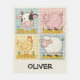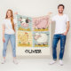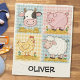 Esta manta juguetona presenta un cuarteto de animales de granja clásicos —una vaca, un cerdo, un pollo y una oveja— cada uno con un colorido fondo de gingham texturizado.