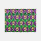 joyas, fondo del Mardi Gras de rhombus violeta y verde, lirios dorados decorados.