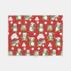 Seamless lindo y feliz, pingüinos personalizado fondo usando sombreros de santa y pañuelos y jugando con bolas de nieve.