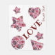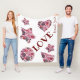 Passión Rojas Rosas, Gerberas y Carnaciones en un corazón, círculo, estrellas en una superficie blanca con una palabra AMOR y firmada. Muy suave de tocar, este impresionante tiro Sherpa tiene un frente texturado con color sólido inverso para un contraste textural. Perfecto para el contrabando de bajo...