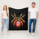 Araña mecánica, de vapor punk con oro, engranajes de latón y una lámpara de vidrio roja sobre un fondo negro. Estilo Steampunk.