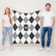 Este patrón geométrico de la manta de pulpa presenta un patrón de manto de argyle negro, gris y blanco con "cosido" gris claro que se extiende diagonalmente a través de las formas de diamante - personalizar con monograma - por katz_d_zynes