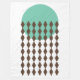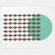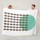 Esta gran manta de lana tiene un diseño moderno de mediados de siglo, con un círculo verde-mar con cadenas de diamantes marrones.