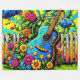 Esta manta de lana tiene una guitarra artística.