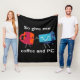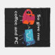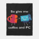 Un tazón de café y una computadora pc de alto cinco años al estilo personalizado. texto: "dame café y pc"