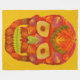 El cráneo inspirado en My Day of the Dead celebra la vida y la muerte con un collage de mis pinturas de hojas de álamos, con los rojos y amarillos de la caída.