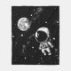 Esta es una manta de lana divertida para un niño que ama el espacio y los astronautas. Es un ilustracion simplista en blanco y negro de un astronauta en el espacio con la Tierra en el fondo.