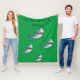 Una manta de lana verde con tiburones y un nombre personalizado.