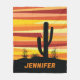 Resumen de ilustracion geométrico del desierto con rayas diagonales amarillas, naranjas y rojas y decoración de cactus. Agregue su nombre/monograma o elimine el texto.