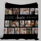 Create a heartfelt tribute with this 18-photo memorial collage blanket, designed In Loving Memory of Auntie. This beautiful keepsake features eighteen cherished photos arranged over a sleek black background, creating a timeless and elegant look. Personalize it with your Aunt’s name, life dates, and meaningful details to honor her legacy and keep her memory close.