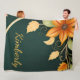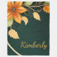 Un marco cautivador con temática otoñal adornado con vibrantes flores naranjas y hojas doradas. El fondo verde profundo crea un contraste sorprendente, haciendo que los elementos florales giratorios se destaquen de forma bonita.