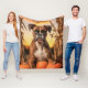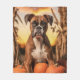 Aproveche el encanto rústico de otoño con nuestra impresionante manta mostrando a un perro Boxer en un campo de cosecha mientras el sol se pone en el fondo.
