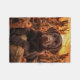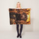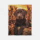 Disfrute del encanto rústico de otoño con nuestra impresionante manta mostrando un adorable cachorro de Labrador de Chocolate en un campo de cosecha mientras el sol se pone en el fondo.