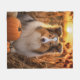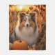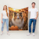 Aproveche el encanto rústico de otoño con nuestra impresionante manta mostrando a un adorable perro pastelero de Shetland en un campo de cosecha mientras el sol se pone en el fondo.