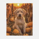 Experimente lo último en comodidad y compañía con nuestra cálida y acogedora manta con un adorable cachorro de Labrador Amarillo en medio de un campo de calabazas al atardecer, es la invitación perfecta para entrar en contacto con tu amigo y crear preciosos recuerdos juntos.