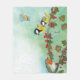 Grandes tetas de pájaros y rollo rojo en una rama de espino dorsal. Ilustracion de libros. Pintura de pájaro. Regalo de amante de los pájaros.