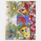 Escena pintada con gusto de una variedad de pájaros cantores y casas de pájaros coloridos en un jardín florido de madera de palo y de cosmos. Los pájaros rojos, amarillos y azules son el hogar de los pájaros planos orientales, los cardenales rojos del norte y los ataúdes americanos.