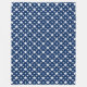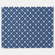 Una manta de diseño con un patrón de estrellas grandes y pequeñas blancas sobre un fondo azul marino.