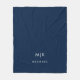 Manta Polar Azul marino y blanco | Monograma moderno