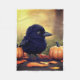 There is a adorable black baby crow on this fleece throw blanket along with with the bird are some pumpkins and fall leaves. This blanket will make cute home decor for any room.