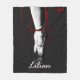 Un amor, calentamiento y un regalo cómodo para la bailarina de ballet. Ballet La manta de pulpa de bailarina tiene pies bailarines en zapatos de ballet rodeados por una cinta de satén roja contra un fondo negro con un lugar para su personalización. Sencillo, elegante y único.