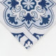 Este producto tiene un diseño intrincado con un fondo azul oscuro y patrones ornamentales blancos. El diseño recuerda a los estilos tradicionales de cerámica o porcelana, que pueden interesar a los amantes de la estética clásica o vintage.