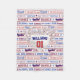 Esta manta personalizada de pelotas de béisbol tiene un patrón de puntas de pelota con lingo de béisbol y estrellas todas en rojo, blanco y azul. Hay un plato casero con unas bolas de béisbol en forma de corazón. Personalice esta manta con un nombre o apellido y un número de jugador. También puede hacer que el patrón de la manta de la lana sea más pequeño o mayor. Un gran regalo personalizado para regalar a tu fanático del béisbol.