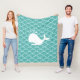 Bella ballena en abstracto océano verde azulado ondulado Fleece Blanket. Hermosas mantas de ropa elegante.