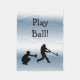 Esta fresca manta de lana de béisbol presenta un catcher y un bateador con silueta negra en un fondo de gradiente azul con el texto: Play Ball. Puede cambiar o eliminar fácilmente el texto. ¡Añade tu jugador o equipo favorito!