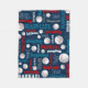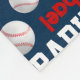 Béisbol deportivo con una manta de nombres personalizada de fondo azul oscuro. Esta manta de estampado con temática deportiva tipográfica tiene pelotas de béisbol, y verde azulado azul, rojo, gris y blanco que se puede personalizar con tu propio nombre, actualmente lee Raphael. Hay otras bolas deportivas disponibles en este diseño. Diseñado por www.mylittleeden.com