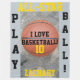 Diversión deportiva de baloncesto. Fondo azul gris con baloncesto naranja en el centro sobre un fresco fondo de hormigón. Nombre escrito en tipografía de color amarillo dorado. Personalice el número de equipo o inserte el número 1. Me encanta el baloncesto escrito en tipografía negra. Play Ball está escrito en negro. Haga clic en Personalizar y seleccione Fondo en el lado izquierdo para cambiar el color. Fotografía original y diseño © 2017, 2018 TamiraZDesigns.