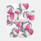 Esta divertida manta de pulpa con temática de baloncesto para su habitación con temática de baloncesto puede ser personalizada con el nombre de la atleta encima de la imagen de un grupo de baloncesto de tamaño variado que tienen paneles alternados rosa, blanco y gris - de katz_d_zynes