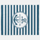Fondo de patrón de franjas azul y blanca de la marina con ancla náutica 2 y círculo blanco con monograma de personalizable.