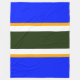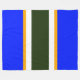 Este diseño audaz y colorido presenta rayas amarillas blancas y doradas que resaltan una vibrante franja central verde de bosque oscuro. Las franjas de borde exterior azul real coloridas contiguas completan la composición deportiva.