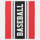 Este diseño deportivo y atlético presenta texto BASEBALL en negrita en el interior de bandas horizontales de carreras en blanco y negro contra rayas exteriores brillantes rojas. El texto de este diseño se puede personalizar.