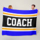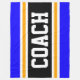 Este diseño deportivo y atlético presenta texto en negrita COACH dentro de una banda ancha negra realzada con doble franjas de carreras blancas y amarillas contra rayas exteriores brillantes. El texto se puede personalizar.