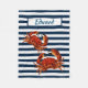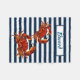 Cangrejo rojo sobre rayas azules marinas; perfecto para los amantes del mar o de la costa.