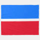 Este elegante diseño elegante presenta paneles de color sólido azul y rojo brillante, unificados con una banda central blanca más delgada y nítida que recorre horizontalmente la longitud del diseño.