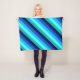Una manta de faja de pequeño tamaño con un diseño de patrón fresco de rayas diagonales en azul marino, azul cobalto, azul celeste, verde azulado de menta helada y turquesa clara.