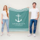 ¿Tienes gusto por todas las cosas náuticas? Funda personalizada de nombre familiar con ancla blanca náutica y rayas. Esta manta de ancla náutica elegante es el regalo perfecto.