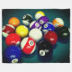 Esta manta de lana tiene bolas de billar retratadas en ella.