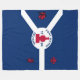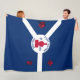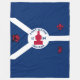 Fleece Blanket con la bandera de la ciudad de Fort Wayne, Indiana; bandera azul y blanca y con taquilla roja en el centro y tres ilustraciones en el campo azul - ilustracion de la cabeza del nativo americano, flor de lys francés y león británico